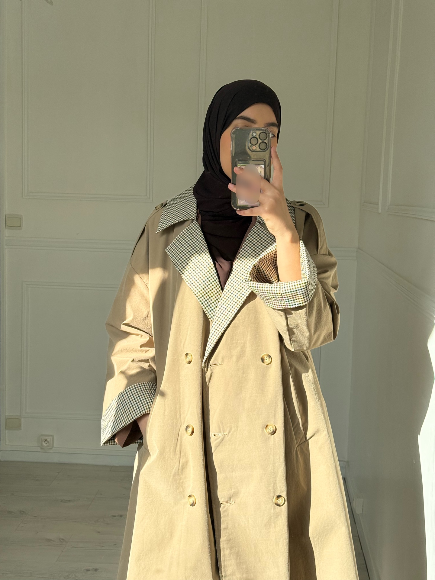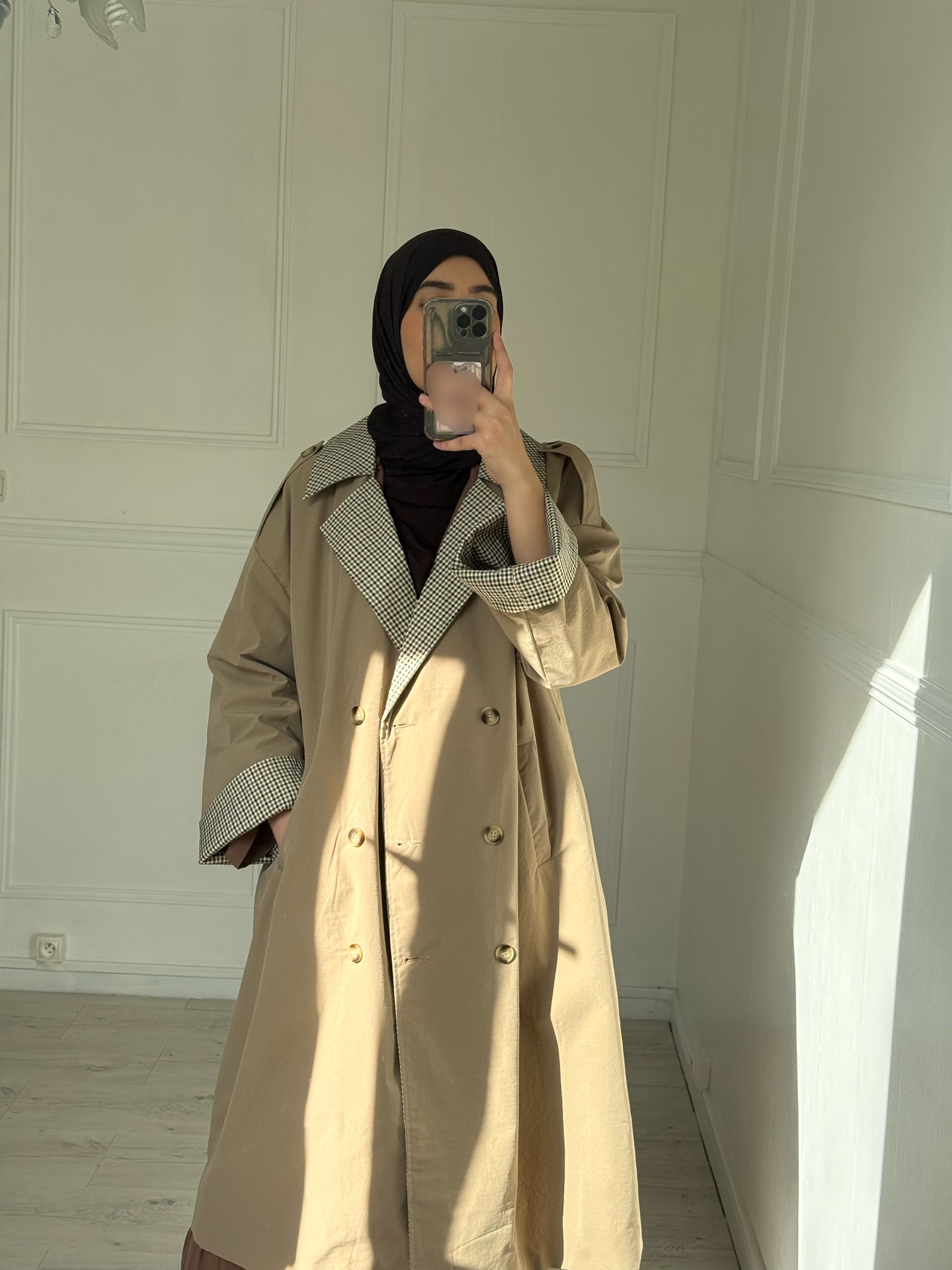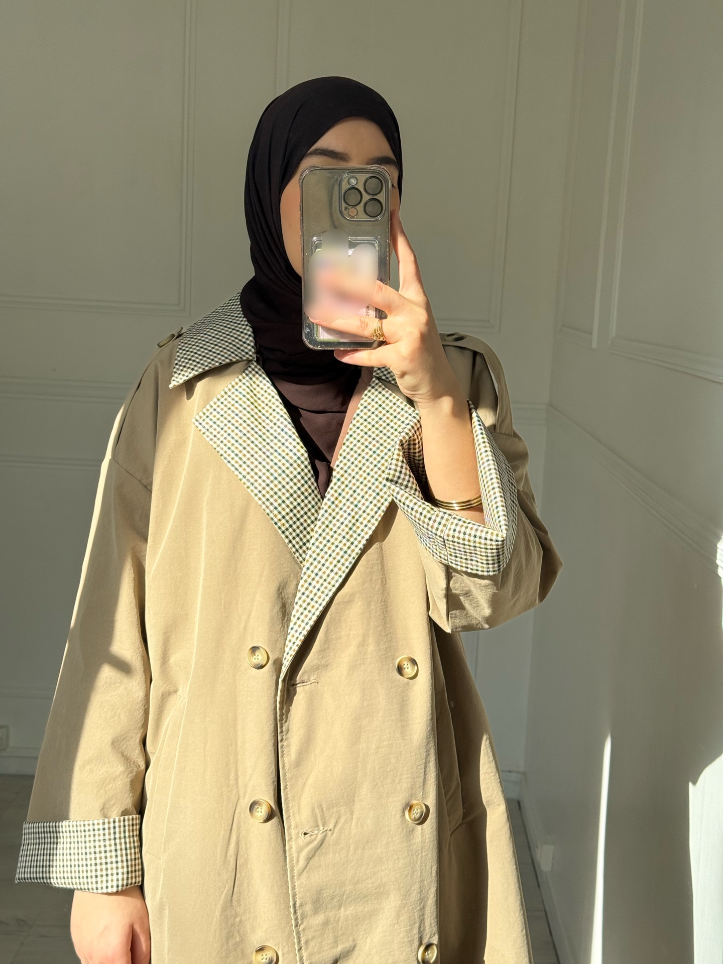 Trench très tendance. Couleur beige à la mode.
